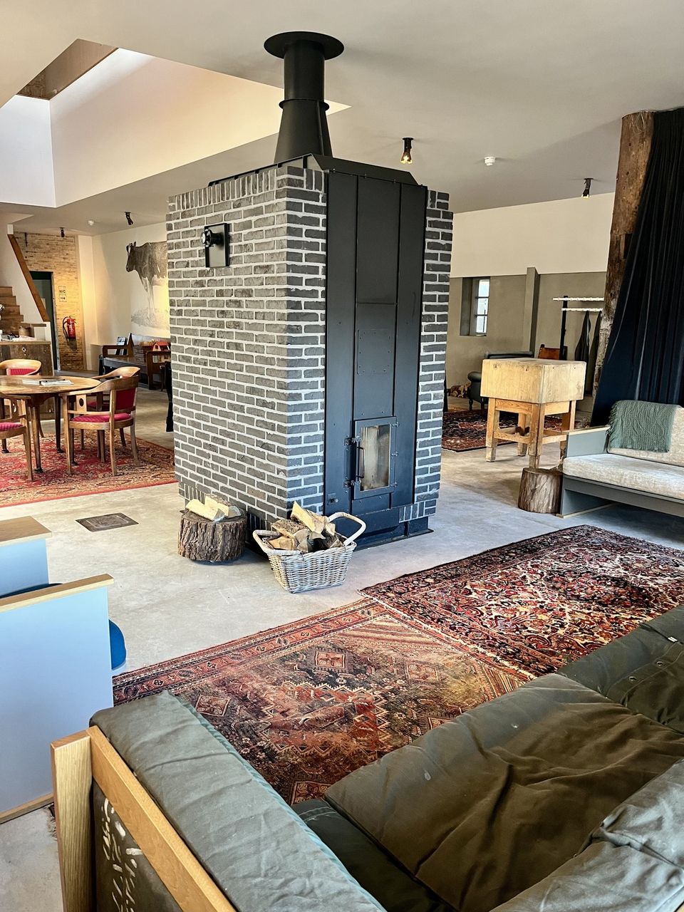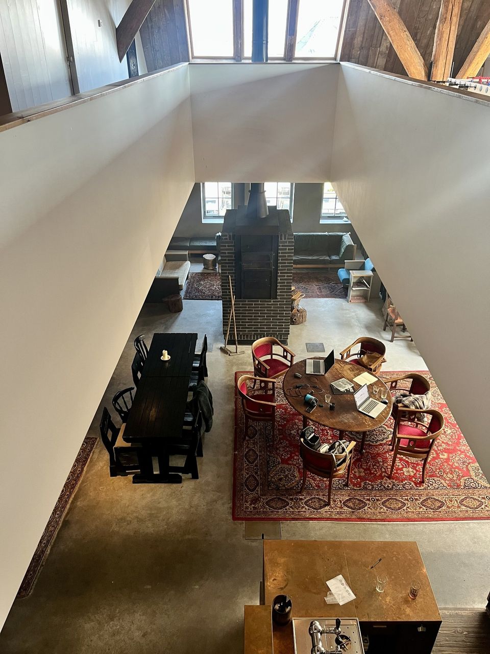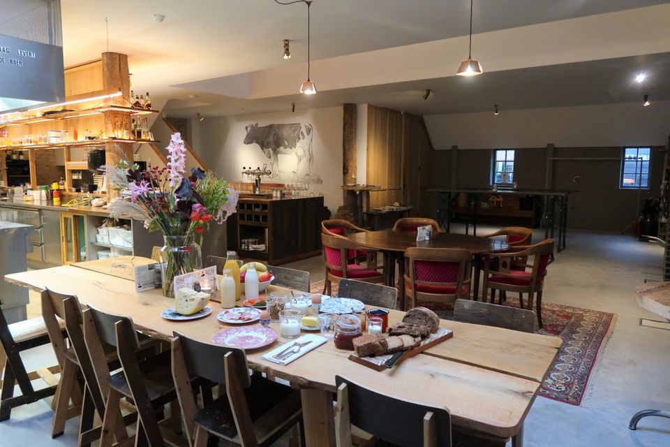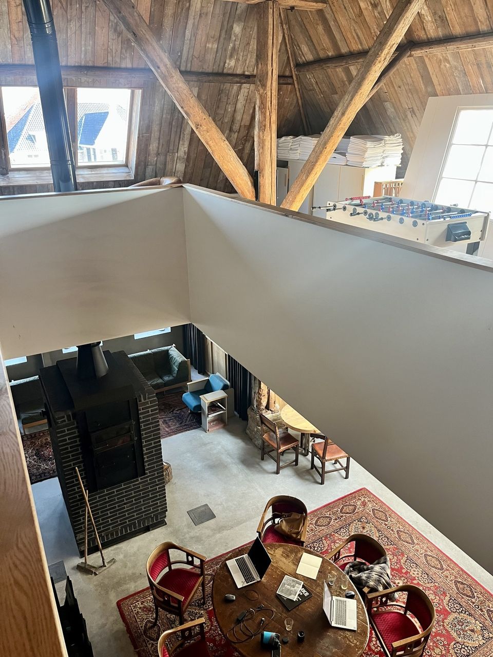 Je komt binnen in een ruime en warme leefruimte, ingericht met meerdere zithoeken, comfortabele loungebanken, een open haard en tv, ideaal voor lange avonden samen. De professionele open keuken is van alle gemakken voorzien voor wie zelf wil koken, maar er is ook de mogelijkheid om een professionele chef in te huren voor een culinaire avond of workshop. Dineren kan met de hele groep, zowel in de leefruimte als in de aparte eetkamer. Voor wie zin heeft in een spelletje is er binnen volop vertier: tafeltennis, tafelvoetbal of gewoon gezellig borrelen bij de haard. Deze plek is geschikt voor ieder seizoen, warm en knus binnen, levendig en licht buiten. Het huis beschikt over zes slaapkamers en vijf badkamers, met ruimte voor maximaal 16 personen. Op de eerste verdieping zijn vijf kamers met tweepersoonsbed en elk een eigen badkamer met douche en toilet; één van deze kamers heeft daarnaast een bad. Twee kamers kunnen worden uitgebreid met een extra bed, ideaal voor gezinnen of vriendengroepen. Op de begane grond bevindt zich een slaapkamer met drie 1-persoonsbedden en een eigen wastafel, met toiletten dichtbij. Alle kamers zijn stijlvol ingericht en ademen dezelfde warme sfeer als de rest van het huis – met comfortabele bedden, rustgevende kleuren en veel daglicht.